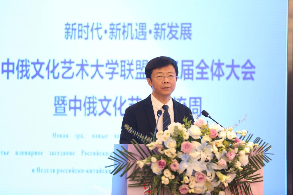 6月8日,中俄文化艺术大学联盟第三届全体大会暨中俄文化艺术交流周在河南师范大学举行。副校长刘鹏飞出席会议并作主旨发言。